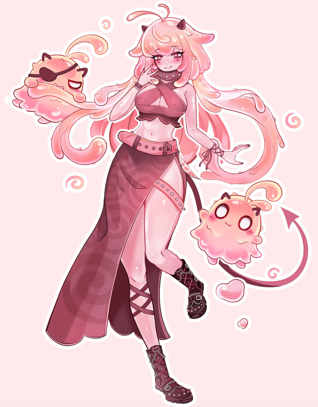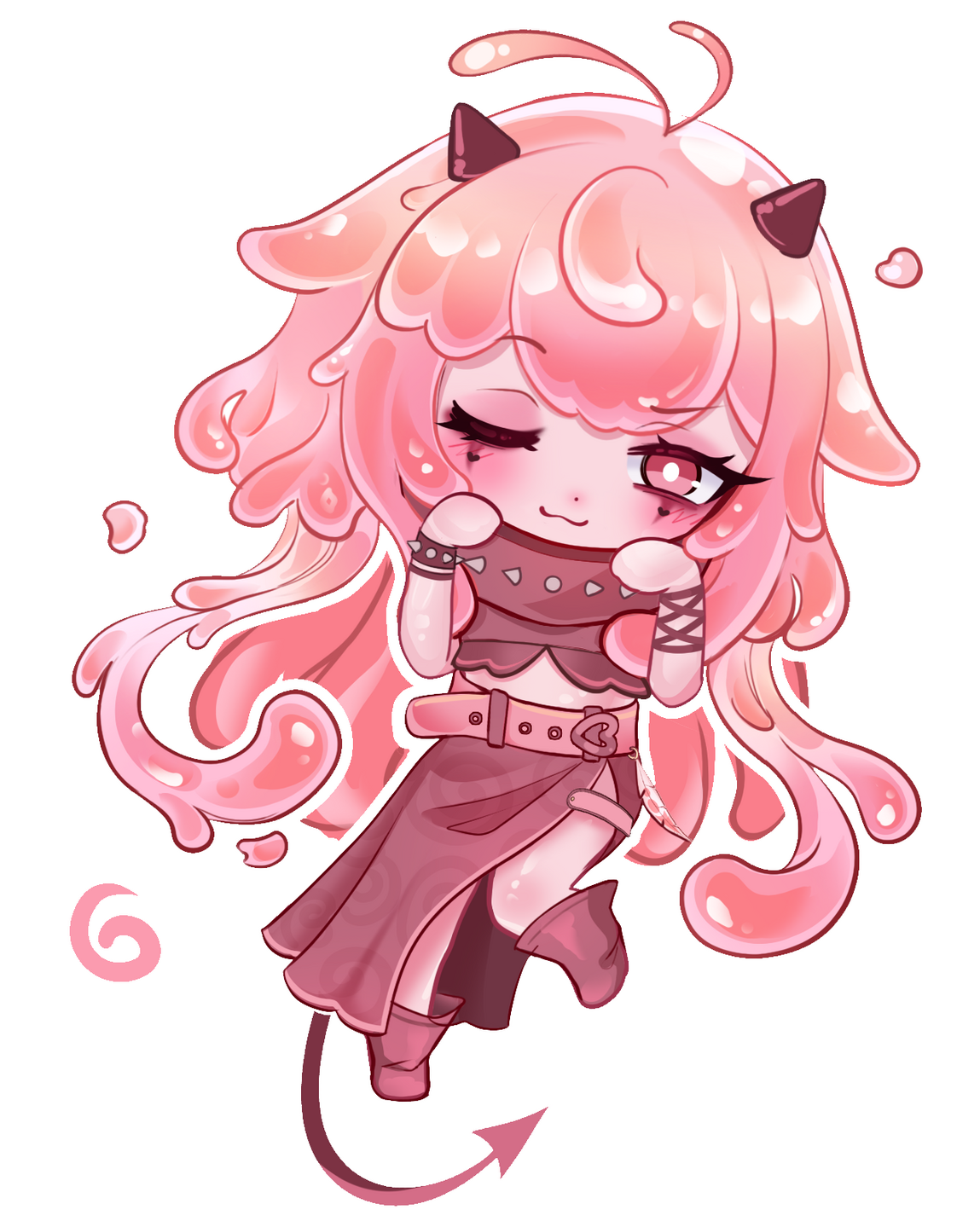hi hi~ i’m juno, your silly little succubus slime girl! i’m terrible at the whole ‘soul stealing’ thing, so don’t worry—i’m only here to steal your heart! give me your attention and affection and you might find yourself with some very clingy, very obsessive slime girl behavior… so please, flirt and adore with caution~ :3